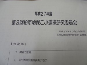 幼稚園、保育園、子ども園から小学校への連携を考える会議に柏市私立幼稚園協会を代表して出席しています。