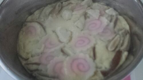 出汁は鍋キューブですが、一旦キューブをお湯で煮立たせて冷まし、