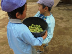 年長クラスの子どもたちは梅の収獲をおこないました。
