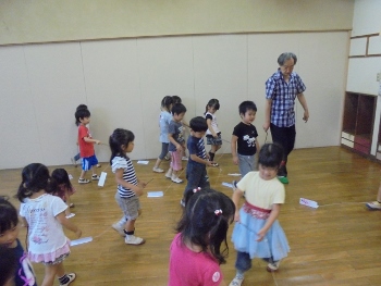 写真日記2016 7月 年中 森田先生の絵画造形指導 2016.07.20年中クラス 森田先生の絵画造形指導の様子です。さかな釣りという題材は年少クラスといっしょですが、魚の造形、はさみを入れる回数、竿と魚の接続方法など多岐に渡って年齢ごとの違いがあります。 2016 7月 年少 渋谷先生の体操指導前の記事 2016 7月 梅ジュース 煮沸次の記事