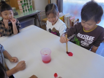 写真日記2016 11月4日 年中クラス 森田先生の絵画造形指導 2016.11.04年中クラスの子どもたちは森田先生の絵画造形指導を受けました。テーマはくりの木幼稚園の自然です。絵の具の何色を使うかテーブルごとに相談して…。 つくしんぼ2歳児親子教室情報更新のお知らせ前の記事 2016 11月4日 年長クラス 卒園アルバム撮影次の記事