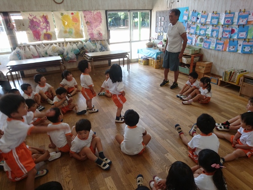 写真日記2018 6月5日 年少クラス 体育指導 2018.06.08年少クラスの子どもたちははじめての体育指導。 体育の渋谷先生と会うのも初めて。 あいさつをしたり、ほんのちょっと体操しました。 2018 6月4日 ピザ作り 余韻前の記事 2018 6月5日 年中クラス ピザごっこ次の記事