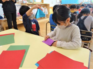 写真日記2021 11月10日 年長クラス おいもパーティー準備 2021.11.10年長クラスの子どもたちはおいもパーティーに向けてお芋を入れる入れ物を作っています。 2021 11月10日 年中クラス 粘土の活動前の記事 2021 11月11日 年少クラス 室内遊び次の記事