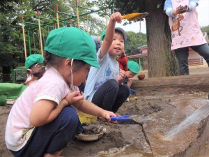 写真日記2022 8月19日 2歳児 どろんこ遊び ボール遊び 2022.08.19砂場にはだしで入って土や泥、水の感触を味わったり、ボール遊びを楽しんでいます。 2022 8月19日 2歳児 楽器遊び前の記事 2022 8月19日 2歳児 はしご登り次の記事